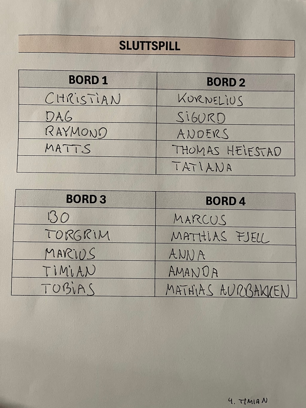 19 spillere i alle aldre møtte til romjulscup. Christian vant foran Dag og Raymond.