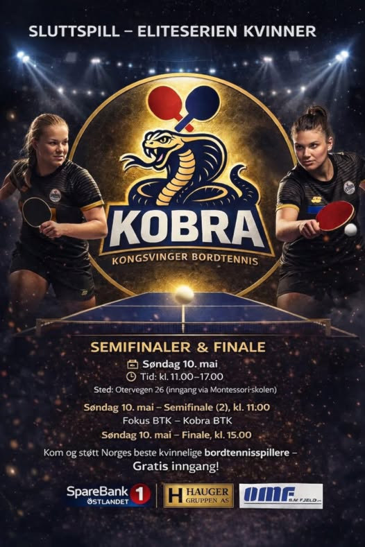 Kobradamene spiller semifinale mot Fokus kl 1100. Vinneren der spiller finalen kl. 1500 mot enten B-72 eller Trondheim. Kobra har en seier og ett tap mot Fokus tidligere i sesongen. Møt opp og hei fram Kobra til finale!!!
